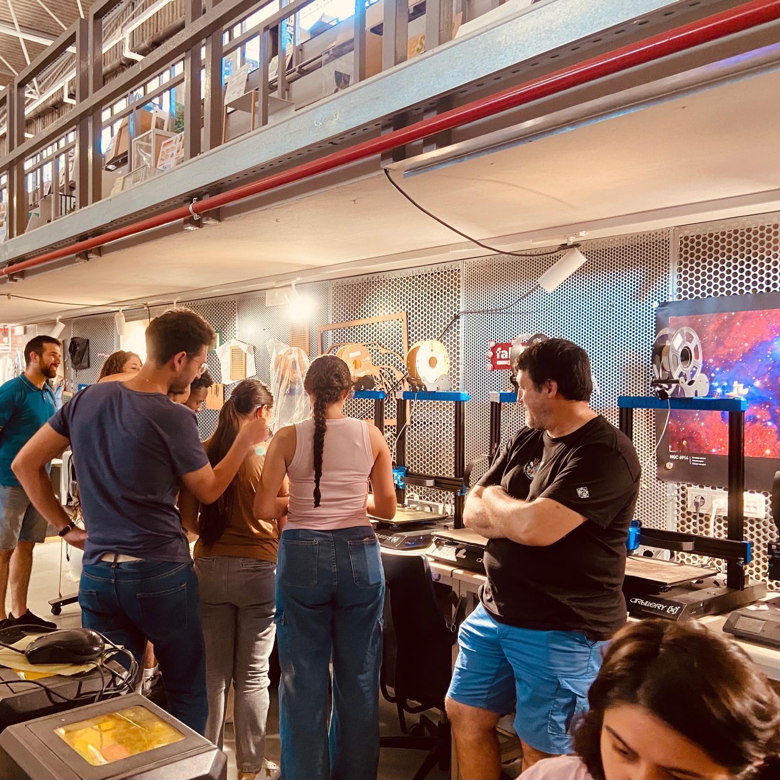 La tercera sesión consistió en aprender a imprimir en 3d las creaciones y para ello nos desplazamos de nuevo al Fablab donde fueron lanzadas las primera pruebas digitales con la inestimable ayuda de Adriano Jiménez y el equipo del Fablab.