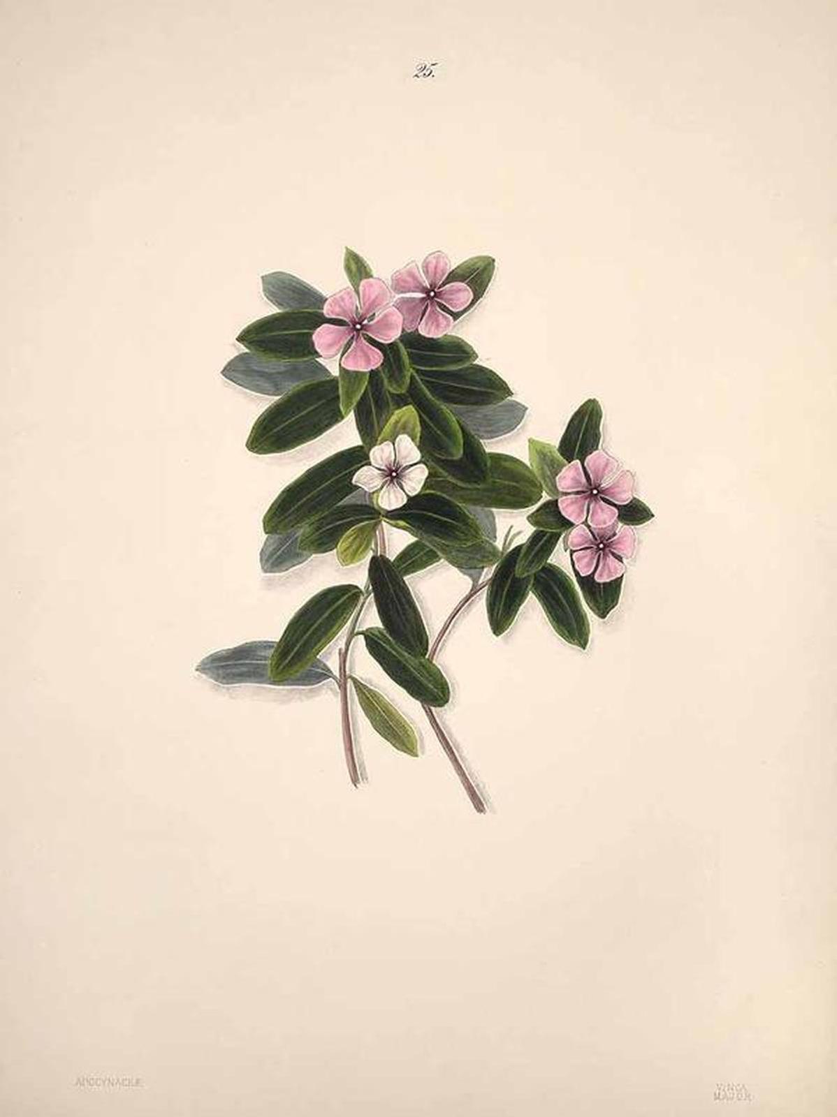 ApocynaceaeDescrita por primera vez por el francés Etienne Flacourt en 1645, gobernador de Madagascar por la Compañía Francesa de las Indias Orientales, la vincapervinca (hierba doncella) pasó a la actualidad, en los años setenta, por hallarse en ella compuestos con importantes virtudes anticancerosas.