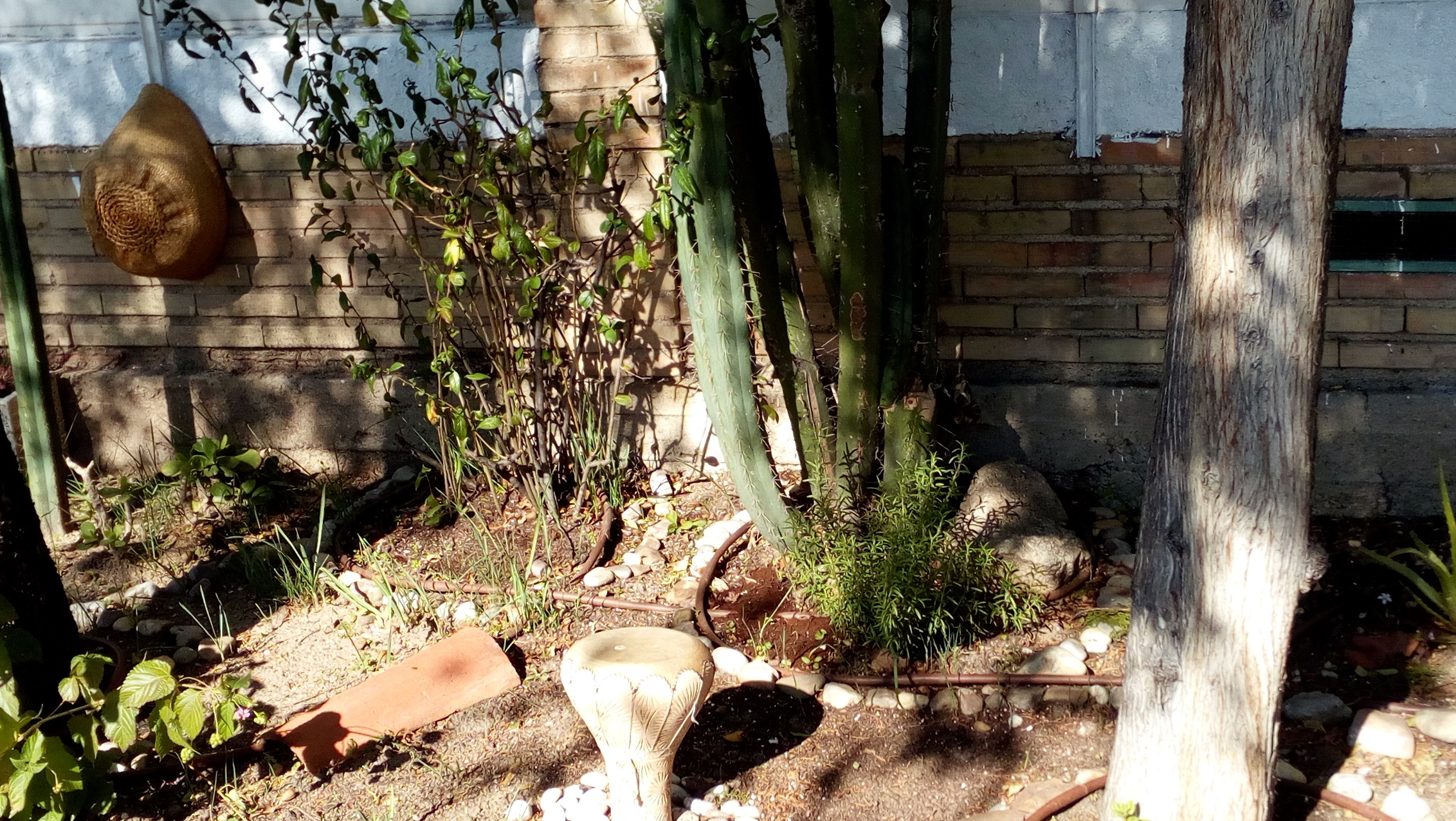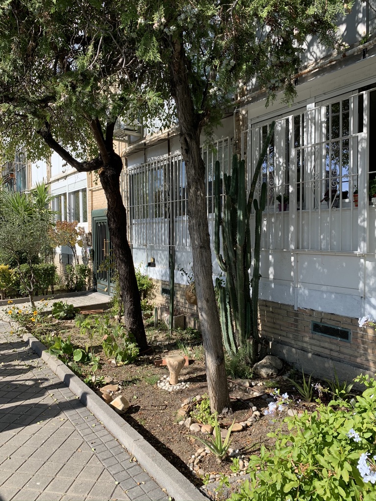Una muestra es este jardín del número 96. No llegamos a conocer a sus cuidadores, pero ciertos elementos del parterre nos traen aires africanos.
